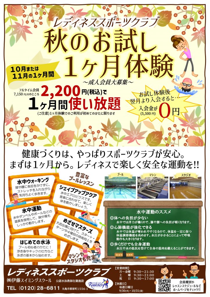 【レディネス】成人会員 10月11月お試し1ヶ月体験